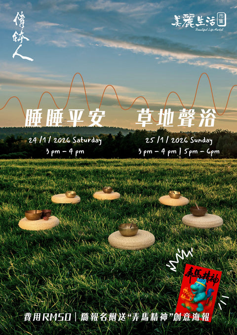 新的一年,我們將悠悠然躺在美麗的草地上,享受一場美麗的頌鉢聲浴。允許一場療癒與放鬆,在微微的光與日下發生。醒來我們將悄然發現,這該是馬年提醒自己的“美麗生活”節奏~